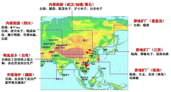 在論及未來PCB產業的布局和發展的戰略布局上,董鐘明指出,中國大陸西部作為地方政府大力承接產業轉移,在土地優惠、稅收優惠、免費代招工等多方面服務和政策都對東部企業有很大的吸引力,同時,在以成都和重慶為核心的輻射區域發展概念,共發展出遂南達、成遂渝、成內渝、成綿樂、延長江五個發展帶,西部 PCB產業的“開花”勢頭顯現。未來,各地區PCB產業也將發生較大的變化,董鐘明預估日商持續進行產線外移,全球布局為主;韓商布局仍以國內本土為重;大陸布局漸由以往聚集東部沿岸開始朝中西部遍地開花,小聚落的生產型態潮增,而臺商HDI、載板等產品以在臺灣生產為主,東部沿海生產仍占相當比重,西部地區以PC用電路板生產為主。